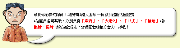 第一名:可獲得 3 萬元 獎金 ( 每組員獲得 7500 元 ) 第二名:可獲得 2 萬元 獎金 ( 每組員獲得 5000 元 ) 第三名:可獲得 1 萬元 獎金 ( 每組員獲得 2500 元 ) 總積分排行前 100 名:依據報名時的遊戲館別,分別獲得「驚奇 4 超人」動態印記 一枚 ( 價值: 5000 枚金幣 / 5 億銀幣 )