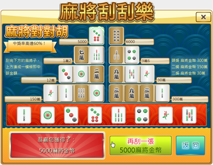 內含麻將金幣480,000枚、 兌換券8張 NT$ 3,999 【前往購買】 |